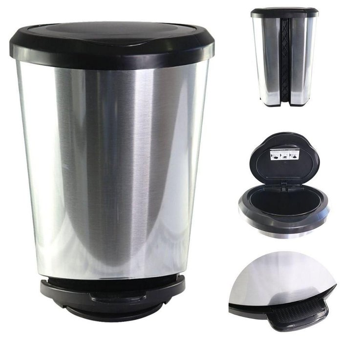 Lixeira com Pedal Label Design Moderno Fechamento Suave Ideal Cozinha Banheiro Escritório Cor Prata