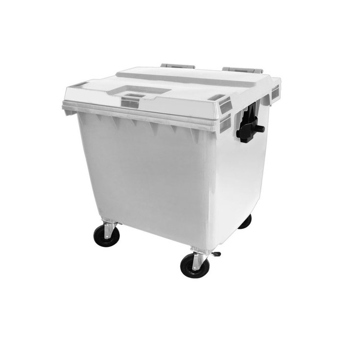 Acompanha:tampa articulada ao próprio corpo, munhões laterais para basculamento na cor preta, dreno inferior incorporado ao corpo para escoamento de líquidos e quatro rodas de borracha maciça de 200 mm com carga de aço galvanizado, sendo duas fixas e duas com freio de estacionamento e ângulo de giro de 360;