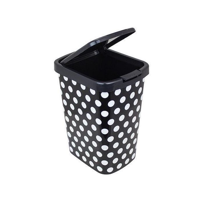 Lixeira Cozinha Pia Grande 9L Com Tampa Poa De Bolinha Preta
