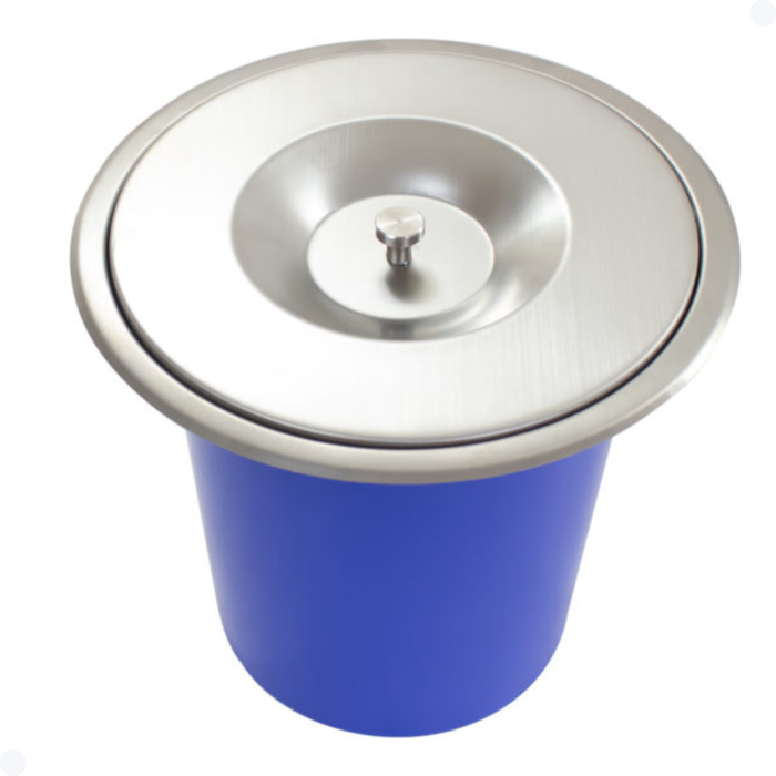 Lixeira de Embutir Redonda Pia Cozinha Aço Escovado 5 Litros Inox Aço Escovado (aro e tampa) com cesto azul