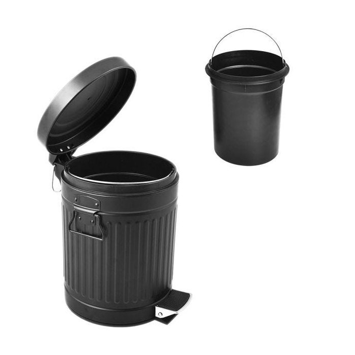 Lixeira de Ferro Preta Com Pedal Lixo Cesta 5L Casa Escritório