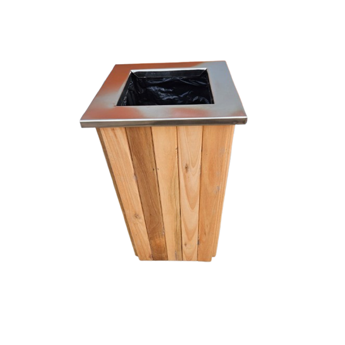 Linda Lixeira Em Madeira Maciça Com Tampa Inox
