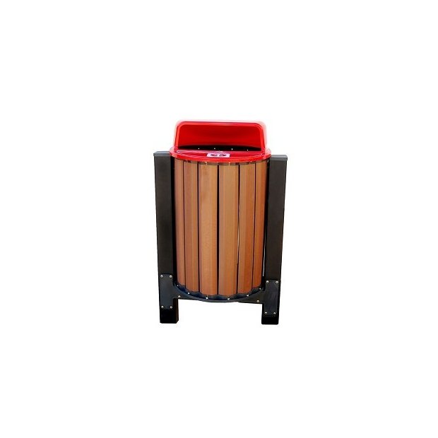 Lixeira de madeira plastica 94 litros Tampa Vermelha- 70cm COM Suporte Fixo
