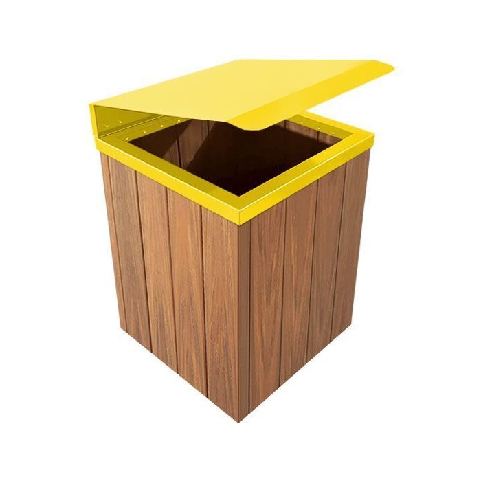 Lixeira de Madeira Plástica Ecológica com Tampa Basculante Amarela 68l Ipê