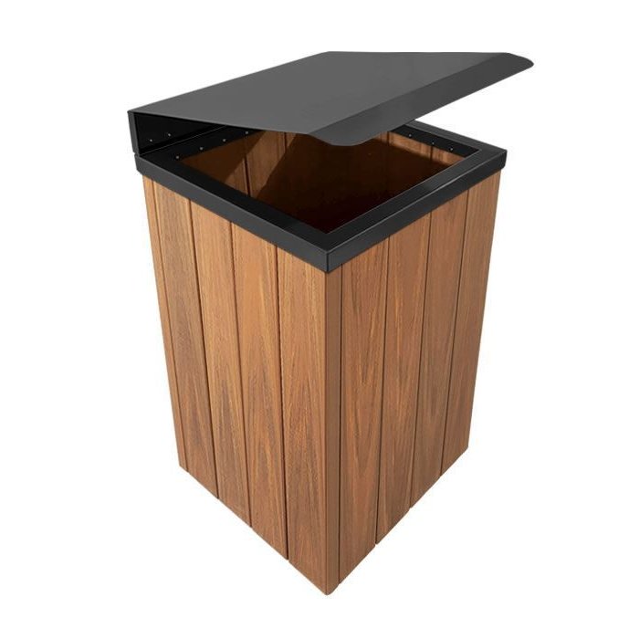 Lixeira de Madeira Plástica Ecológica com Tampa Basculante - Preta - 96 L Ipê