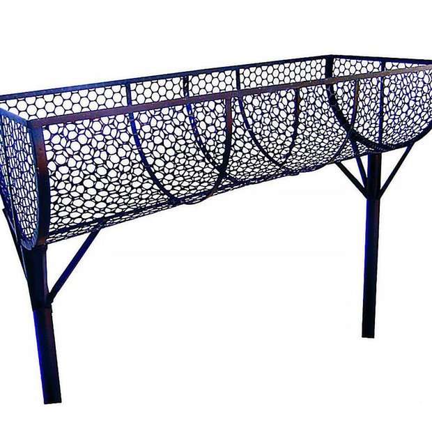 Lixeira de Rua Modelo Tela Moeda Dupla de 100cmFabricada em aço pintado de preto, modelo tela moeda. Já preparada para chumbar.