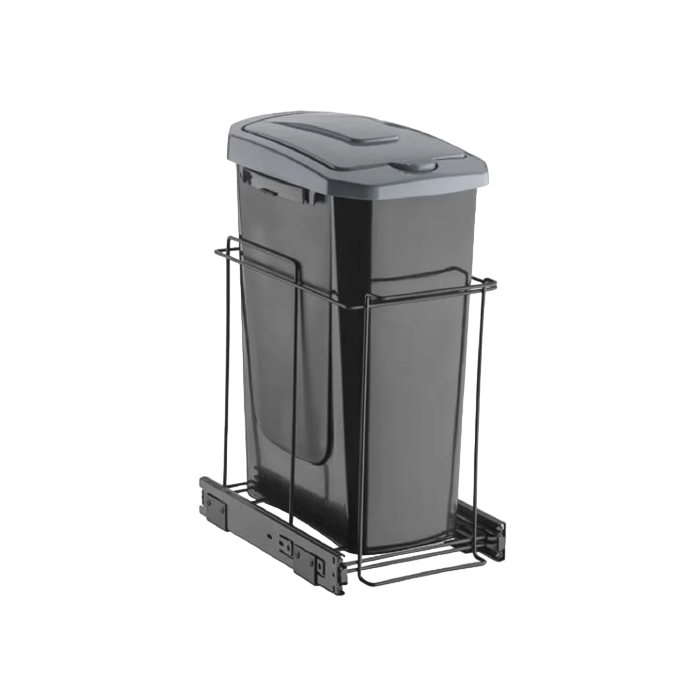Lixeira Deslizante Simples sem Blindagem Preta Para Armário Cesto de 15 litros Aramado Preto fosco- Schmtt - L230 X A470 X P340MM