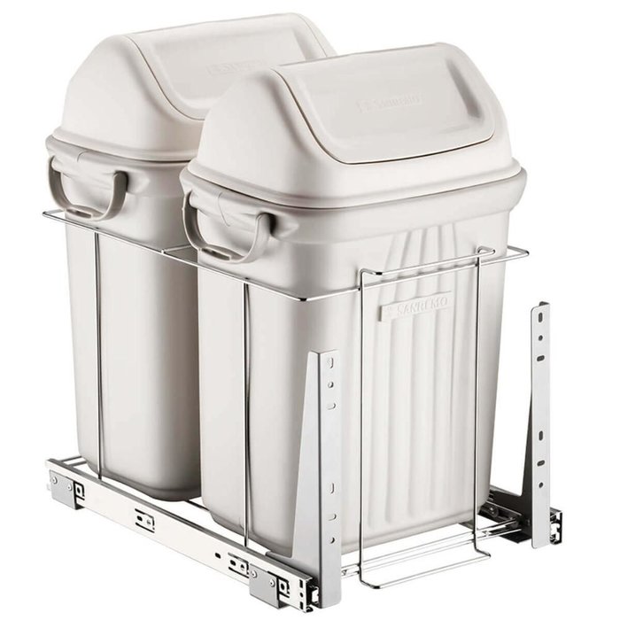 As lixeiras são indispensáveis para manter sua casa sempre limpa e organizada. Essa lixeira para armário possui instalação interna no móvel, sendo uma ótima opção para otimizar seu ambiente. A lixeira dupla telescópica desliza de forma fácil, ficando ao seu alcance para armazenar lixos e resíduos. Cada lixeira possui capacidade de 19 litros, auxiliando na separação correta, além de serem removíveis da estrutura, facilitando no momento de trocar o saco plástico e no momento da limpeza. Garanta qualidade e praticidade em sua rotina com essa lixeira deslizante para cozinha.