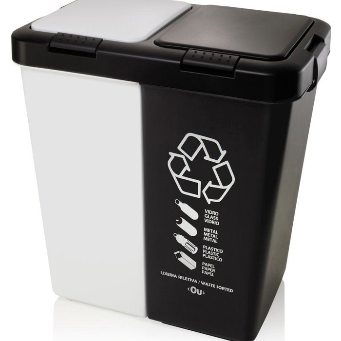 Lixeira Dupla Duo Seletiva Tampas Independentes 20 Litros Branco - Preto