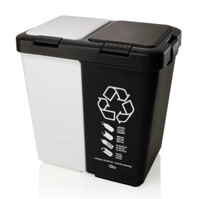 Lixeira Dupla Seletiva Tampas Independentes 40 L Preta e Branca