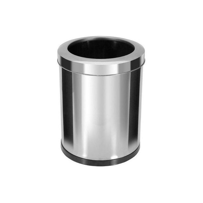 Lixeira em aço inox com aro inox 13,5L.Confeccionada em aço inoxidável AISI 430, fundo em plástico ABS de alta resistência.Possui a borda superior e inferior enrolada para melhor manipulação.Não recomendamos o uso para descarte de resíduos líquidos.Capacidade: 13,5LMedidas: 305mm (altura) X 243mm (diâmetro)