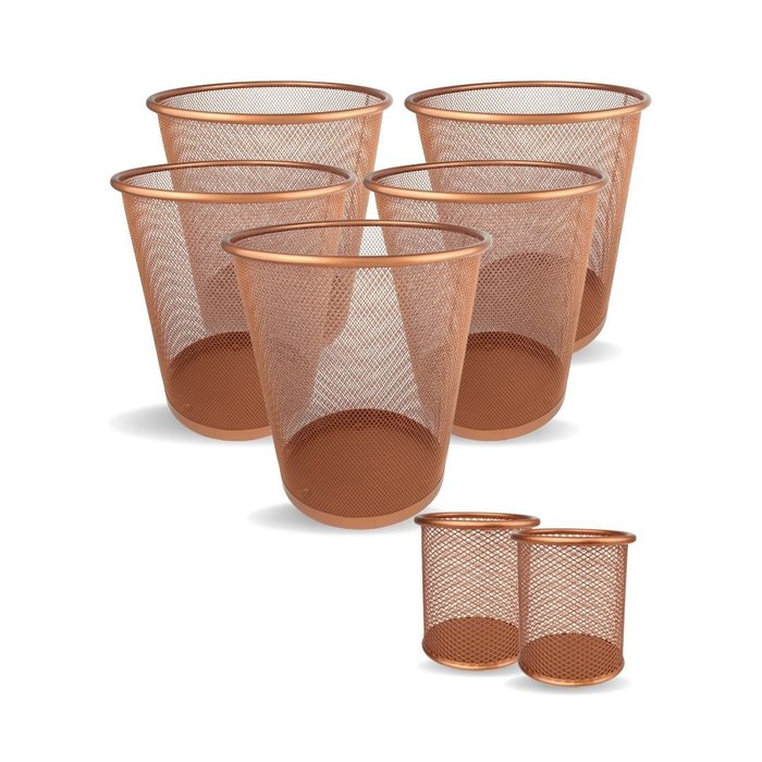 Lixeira Escritorio Rose Gold Kit 5un + 2 Brindes - Rosê Gold Rose Gold