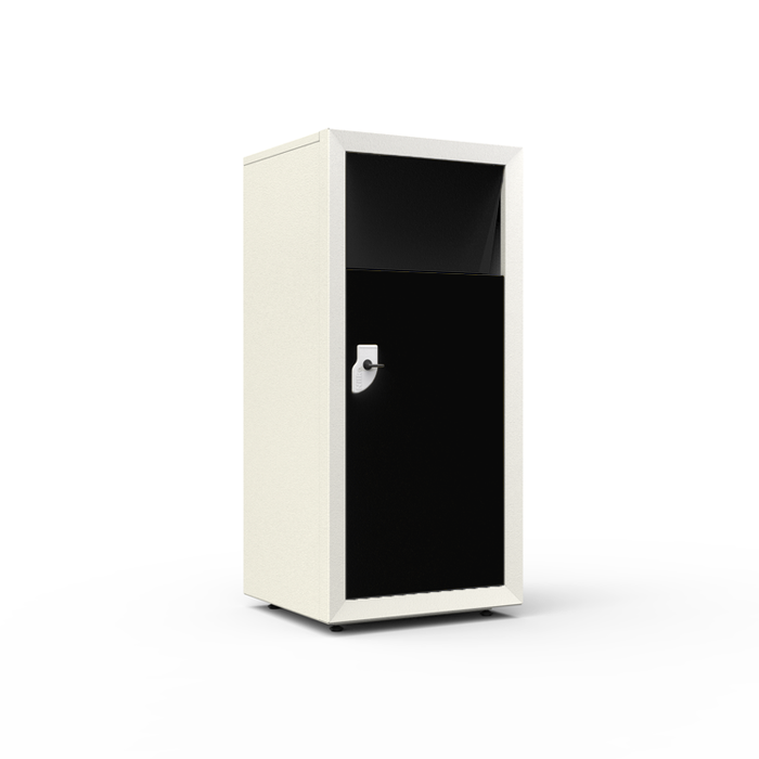 Lixeira fast food fabricada em aço galvanizado que garante maior proteção contra oxidação. Ideal para praças de alimentação. Possui porta frontal, que possibilita a fácil retirada dos materiais. (Acompanha cuba de coleta fabricada em fibra de vidro).