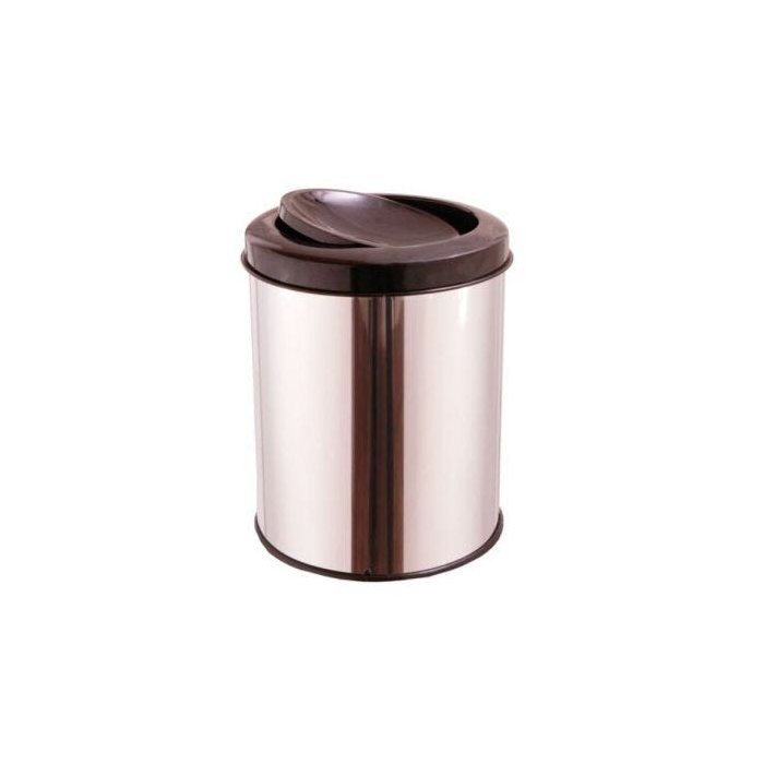Produzido totalmente em inox com tampa em plástico, a lixeira oferece acabamento de ótima qualidade e facilidade de limpeza.