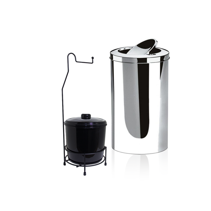 Lixeira Preta para Banheiro e Lixeira Inox Escritório Polido