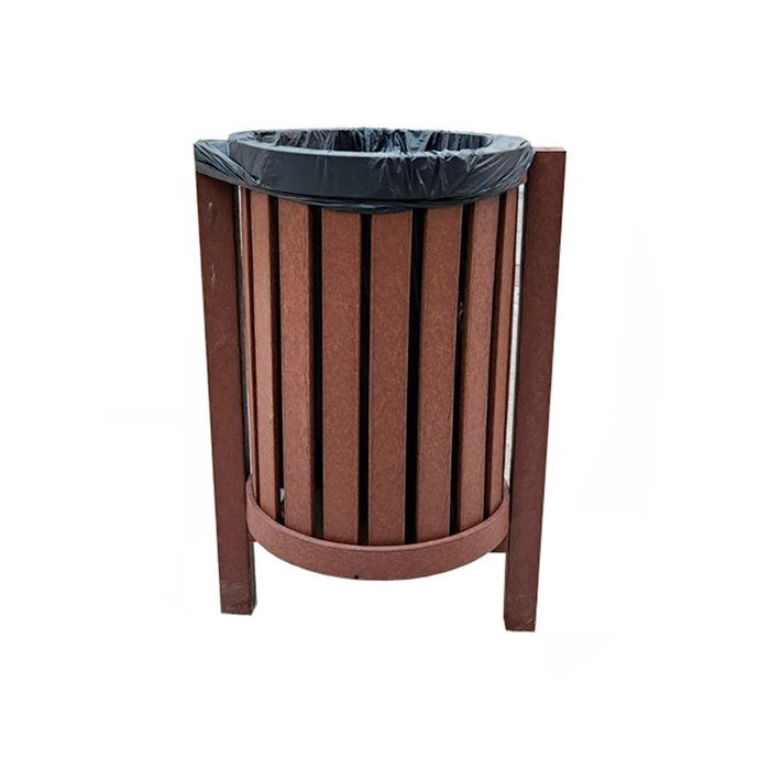 Lixeira Redonda Individual em Madeira Plástica Maciça Marrom Dois Pés 100% Reciclada 50cm / Lc-29