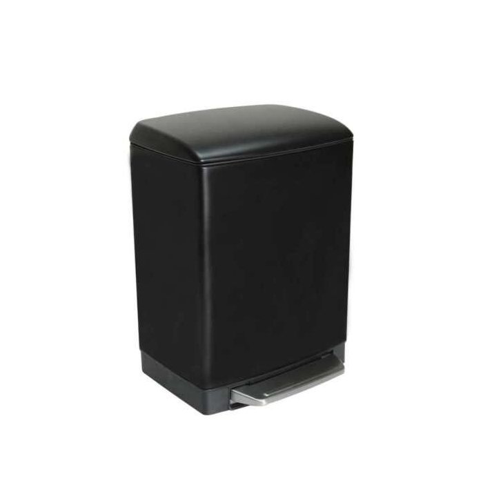 Lixeira Retangular Slim Matte Preta com Pedal e Balde Plástico de 12L GhelPlus