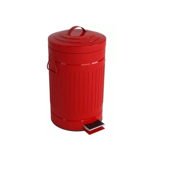Lixeira Retrô Metal Com Pedal E Balde De 12l Ghelplus - VERMELHO