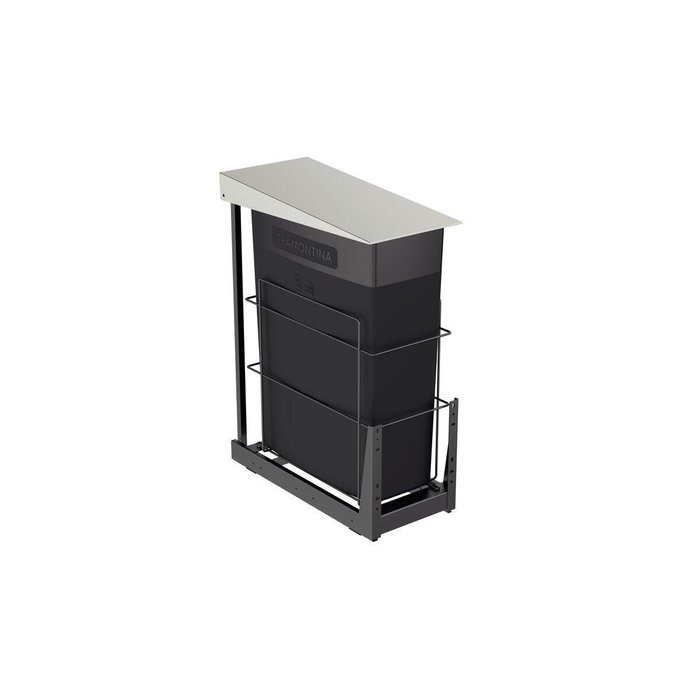 Com uma estrutura resistente em aço carbono e corrediças telescópicas, ela tem balde interno removível com capacidade de 45 litros e furação para fixação do saco de lixo. Sua tampa é em aço inox com acabamento Scotch Brite, confere um toque sofisticado e protege o conteúdo da lixeira de odores desagradáveis.