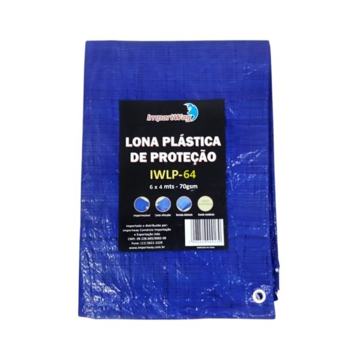 Lona Plástica Impermeável 70gsm 6 x 4 Metros Azul IWLP64 Importway