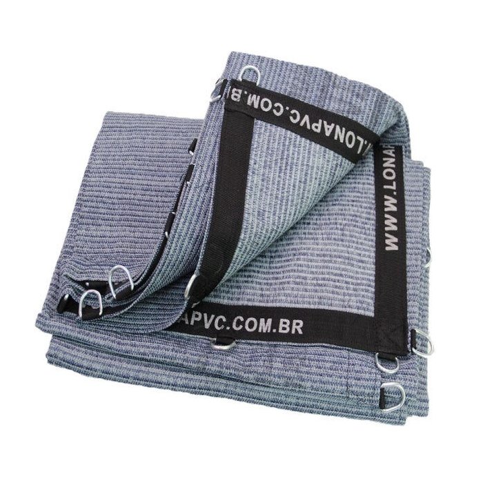 Lona Tela Multi-Malha : Fabricada com fios de polipropileno, tela multimalha fechada 90% de sombreamento, tecido pesado com 320 gr/m², 800 micras, extremamente durável para todas as aplicações de transporte rodoviário e urbano, caminhões e utilitários que não necessite impermeabilização. Possui resistência à temperaturas de -15°C até +60° C, resistência à tração 100kgf/m², resistência ao rasgo 30 kgf. A Lona Tela pode ser utilizada para automação de coberturas para caminhões caçamba, basculante e RollOff - RollOn. Resistência química, tecido de tela Permeável. Pode ser utilizada em caminhões e utilitários de médio, pequeno e grande porte e reboque. A Lona Tela pode ser usada onde seja necessário contenção, evitando que o produto de forma irregular se desprenda da carroceria do caminhão. Facilita o fluxo de ar e aderência na carga. Lona Tela América para uso geral e também pode ser utilizada para fazer sombreamento para animais vivos (pecuária, avicultura, etc) e uso em cortinas externas não prejudicando a ventilação e evita passagem de chuva quando utilizada verticalmente. Super resistente ao rasgo e à abrasão. Cor única mesclado azul cinza, conforme imagens. A Lona Tela Multi-Malha possui cinta de segurança em todo o perímetro da bainha com largura de 50mm e costura dupla. A Lona Tela América tem grande durabilidade no uso diário. Possui argolas de aço inox a cada 50cm. Acompanha elásticos de borracha latex de 8mm com potencial de alongamento de 100% do comprimento. Indicada para: Transporte de árvores e podas de árvores, legumes e frutas para uso industrial (tomates, laranjas, coco, batata) estruturas metálicas, resíduos, pedra brita, cascalho, areia, sucatas de metais ferrosos em fardo, sucata de alumínio em fardo, sucatas de lixo comercial e industrial, transporte de madeira cerrada, bruta e em toras. Garantia de maior ventilação e sombreamento no transporte. Utilizada também para Rolloff Container. Cobertura de vagões ferroviários, transporte de terra, tijolos, carretas agrícolas. A Lona Tela PEAD não possui tratamento retardante de chama ( Anti-Chama ) a LonaTela não é a prova d´água. Utilize para transporte de frutas e legumes para uso industrial, exemplo: tomate, cenoura, cebola, utilize para transporte de carvão mineral.