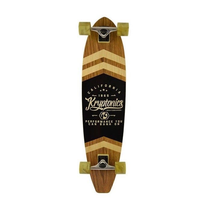 LONGBOARD CLASSIC SWIRLED A nova linha de Longboards Kryptonics vem com um design que refletem a imagem de skate original Kryptonics 65'. Todas as artes foram criadas e projetadas por artistas do universo dos skates. Possuem shapes de 8 camadas camufladas, são resistente e possuem boa durabilidade. Suas rodas Kryptonics no tamanho de 62x51mm, dureza 83A e ABEC 5 são macias, tendo melhor desempenho e maior adrenalina nas manobras. SHAPE: 37 "x 9" , 8 camadas em Maple TRUCK: Alumínio polido RODAS: 62 x 51 mm MATERIAL DE RODAS: Poliuretano DUREZAS: 83A ROTAÇÕES: ABEC 5 COR: Marrom