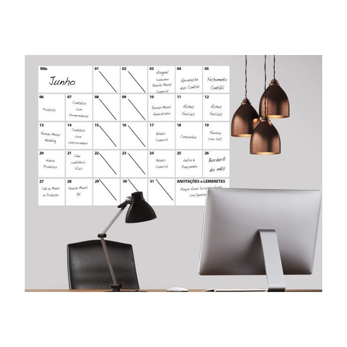 Adesivo Lousa Agenda Mensal Branca com Máscara de Transferência, peças agrupadas.