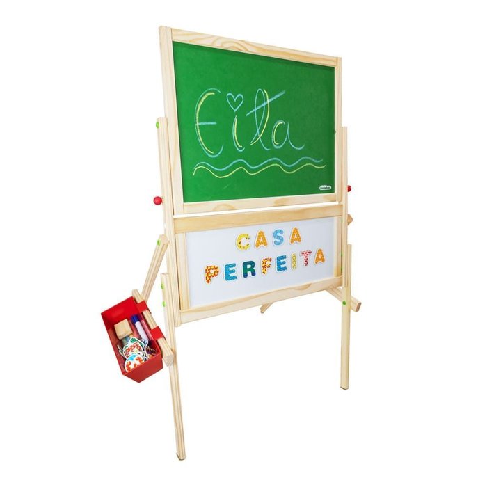 Quadro branco, quadro verde e superfície magnética para brincar e aprender de várias formas.