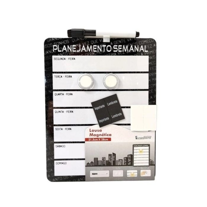 LOUSA PLANEJAMENTO SEMANAL MAGNETICA COMPLETA COM PLANNER ACESSORIOS QUADRO DE RECADOS AVISO UNICA