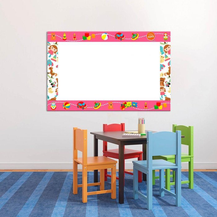 Lousa Quadro Branco Em Pvc Infantil 62x40 Cm - Rosa - Ref 07