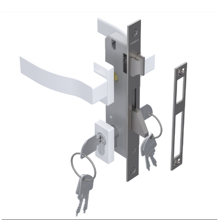 Ls - Conjunto Fechadura Euro 65 com Maçaneta Flare L30 Udinese 325/65 Branco