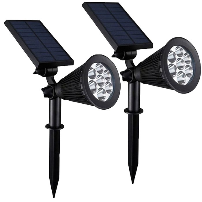 Luminaia Solar Espeto Kit 2 Und 7 Leds Quintal Casa Jardim Iluminaçao Externa Luz Segurança Rua