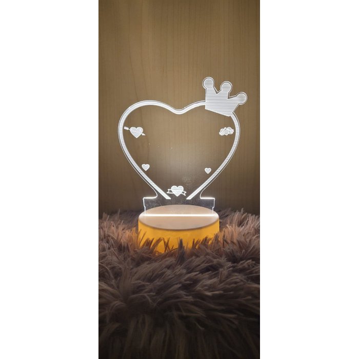 Luminária 3d Led Lousa Quadro Caneta Acrílico Coração - Coroa
