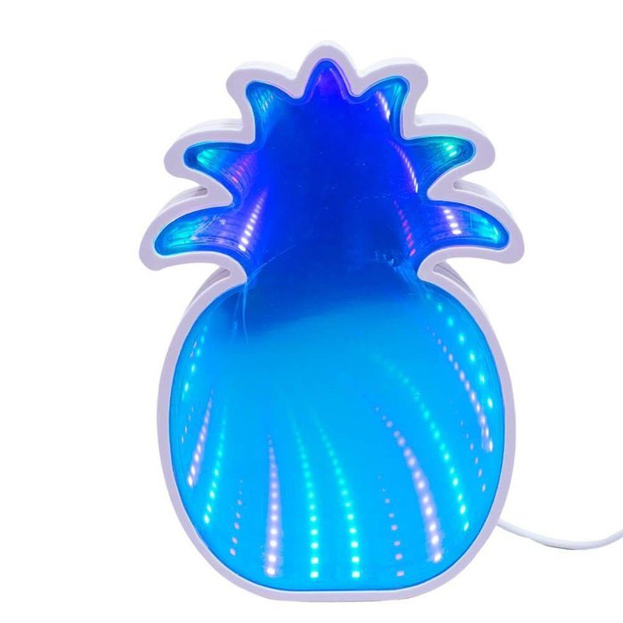 Luminária em formato de abacaxi com luzes que se refletem dando sensação de profundidade. Material: plástico; Funcionamento com cabo USB; Voltagem: 5V; Potência: 4W