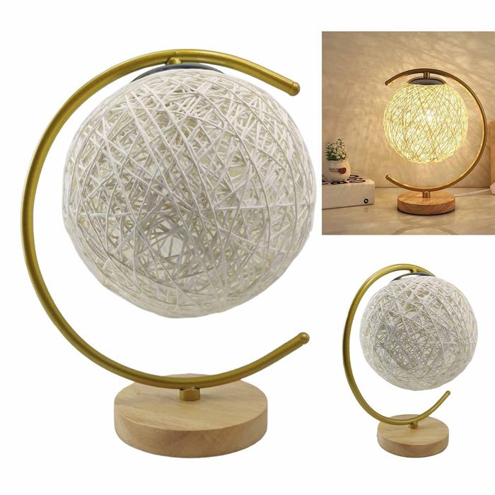Luminaria Abajur Meia Lua Cupula Bola Base Madeira Resistente Rustica Decoraçao Enfeite Sala Quarto Bege
