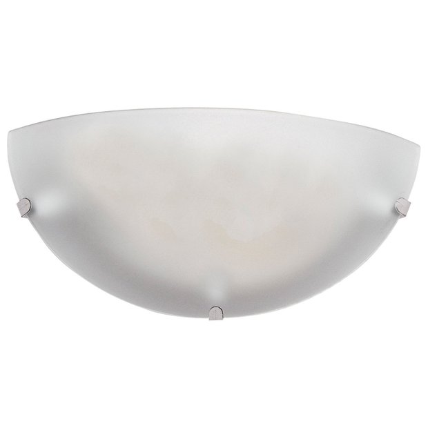 Arandela Clean. Modelo com 1 luz. Arandela Cromo. Base em aço com pintura epóxi branca. Difusor em vidro curvo ácido acetinado com silk print interno branco (reduz o ofuscamento), Garras em nylon. Potência máxima 40W