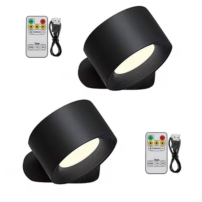 Luminaria Arandela Led 3 Tons Kit 2 Uni Usb Bateria Recarregavel Controle Mesa Cabeceira Quarto Ilum Preto