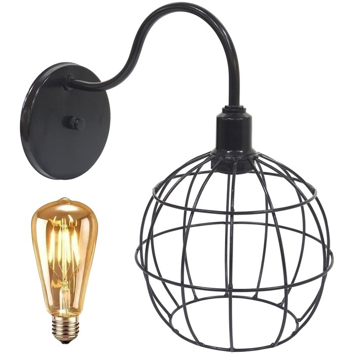 Luminária Arandela Parede Aramada Globo Industrial Retro + Lâmpadas Led Vintage Preto