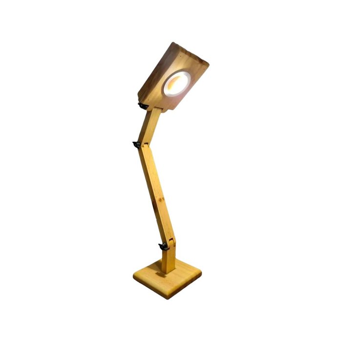 Transforme seu ambiente com a elegância e funcionalidade da nossa Luminária Articulada em Madeira Pinus. Feita artesanalmente, cada peça é única, com variações naturais na tonalidade e nos nós da madeira. Luminária Articulada (0 a 290°) em madeira com lâmpada direcional (0 - 90° dois lados).
