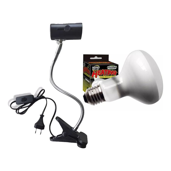 Luminária NJ-05 NOMOYPET articulável longa 360° com pressilha de fixação, indicada para lâmpadas UVA/UVB e lâmpadas cerâmicas de aquecimento.Possui bocal de cerâmica E27, plug padrão brasileiro e interruptor junto ao cabo de alimentação.ESPECIFICAÇÕES