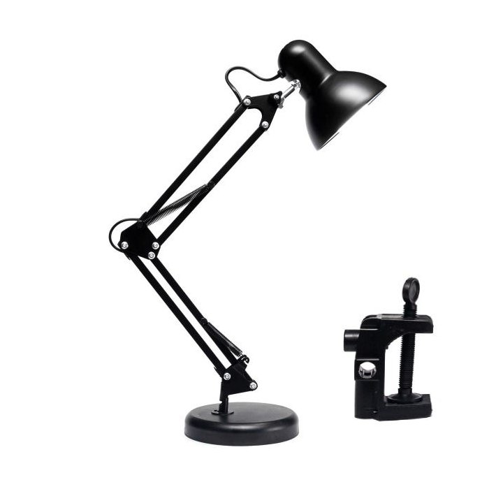 - Flexível e estável: com três juntas do braço da lâmpada, permite ajustar facilmente a luz em praticamente qualquer posição. A base ponderada é mais que suficiente para manter a lâmpada firme.- Material qualificado: material metálico qualificado no braço e na cabeça da luminária, bem como na carcaça pintada de preto, é uma decoração durável e elegante à sua mesa.- Duas maneiras de utilizar: nossa luminária de mesa vem com uma base e uma garra em C, o que significa que ela pode ser disposta com a base ou presa na borda de uma bancada de trabalho por exemplo.- Interruptor ON / OFF: muito fácil de controlar, basta pressionar o botão liga / desliga no cabo de alimentação.- BASE PEQUENA: A base é pequena o suficiente para produzir um espaço mínimo em sua mesa ou cabeceira, proporcionando um espaço muito mais limpo.- Ideal para escritórios, quartos, estúdios, salas e residências.Especificações Técnicas:Frequência: 50/60HzVoltagem: 110/220V – BivoltSoquete: E27Suporte: Base e GarraPeso aproximado: 1,4kgCabo: 1,4mDimensões: Largura: 15cmProfundidade: 26cmAltura: 65cm