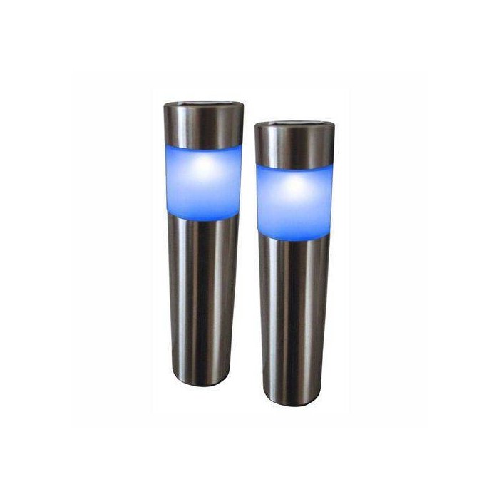 - Luminária Balizadora solar de LED azul, em Inox