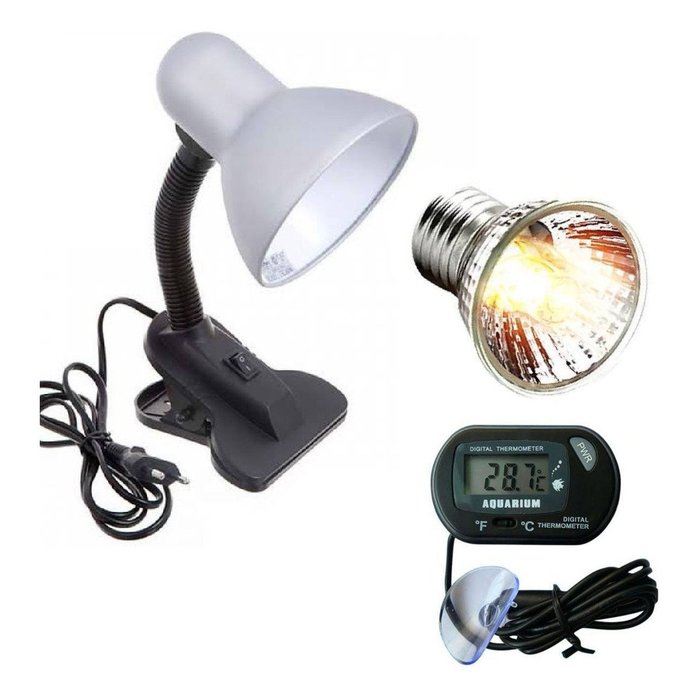 Luminaria Bocal Ceramica C/ Lampada Uva Uvb e Termometro Dig Combo para Terrario Aquaterrario 50w 22