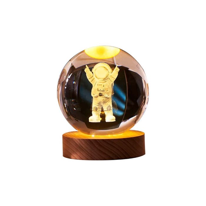 Ilumine seu ambiente com criatividade e modernidade! Nossa Luminária Bola de Cristal 3D Astronauta é uma peça exclusiva que combina design inovador e elegância. Feita com uma bola em acrílico cristalino, ela projeta a figura de um astronauta em incríveis detalhes 3D, proporcionando um visual futurista e encantador. Sua base é feita em madeira e possui um cabo USB embutido.