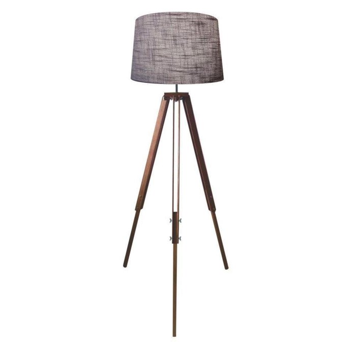 Luminária Chão Tripé Base Madeira 40x45 Bivolt Rústico Cinza Cinza