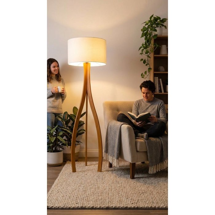 Luminária Coluna de Piso Ipanema Desmontável em Madeira com Cupula Algodão Cru Cru