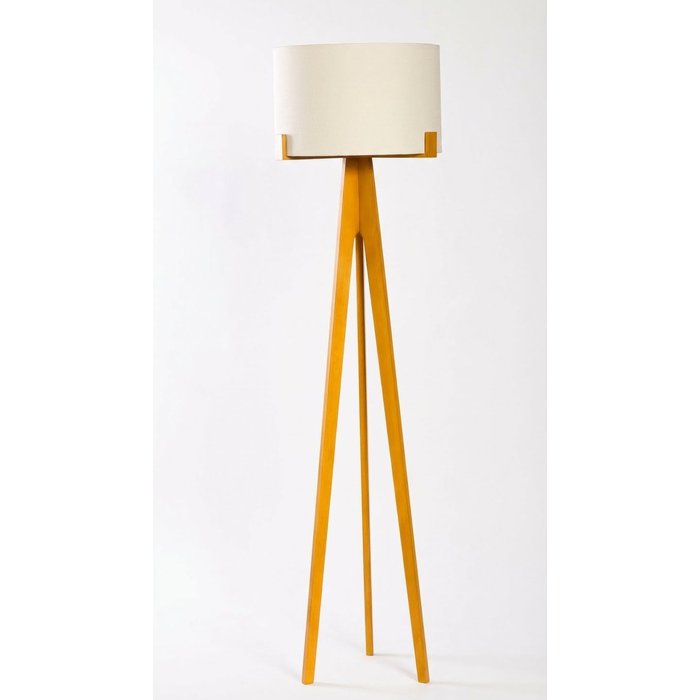 Luminária Coluna para Sala Tripé Áustria com Cupula Algodão Design Minimalista Decoração Cedro