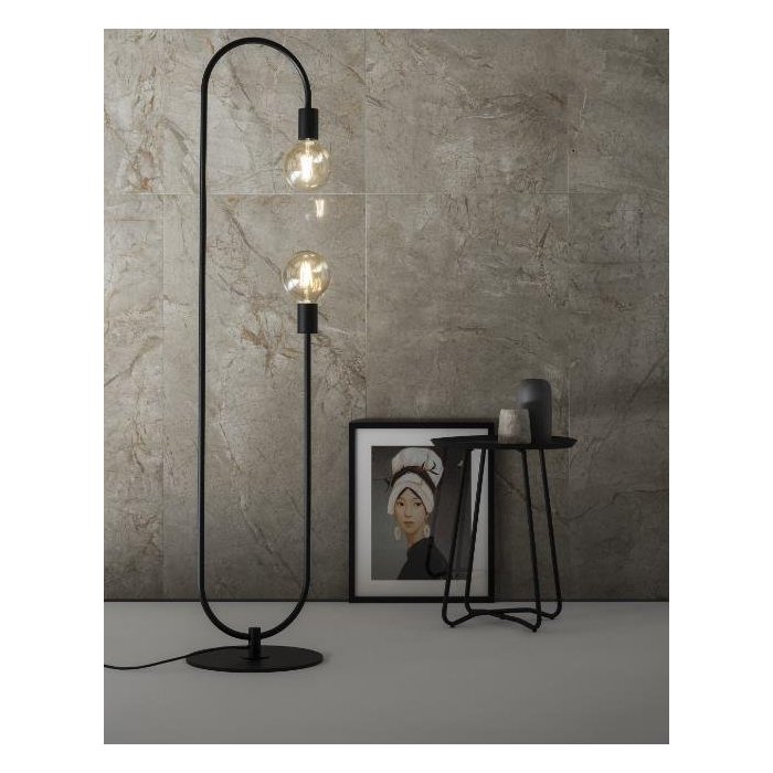 Luminária de Chão Moderna Slim Curva Base Metálica p/2 Lâmpadas E-27 - Preta