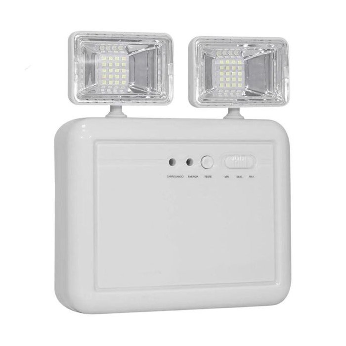 Luminária de Emergência Recarregavel 2 Farois Lâmpada LED Iluminaçao Luz Casa Comercio Empresa Branco