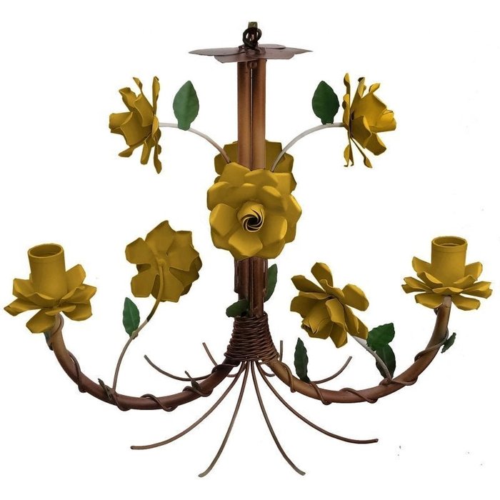 Luminária de Ferro Artesanal Rustica com Flores Pequena para Salinha de Jantar - Amarelo